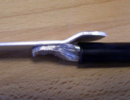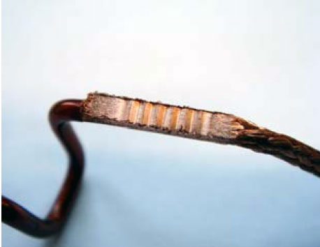 На фото ниже показан пример сварки многожильного алюминиевого провода к алюминиевой